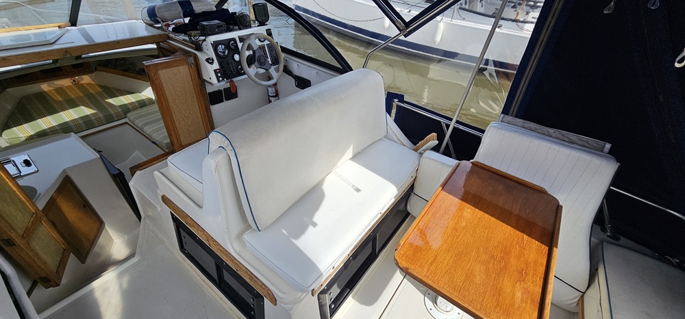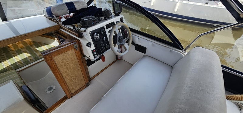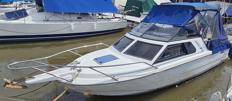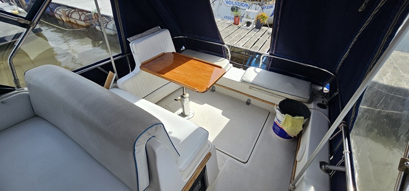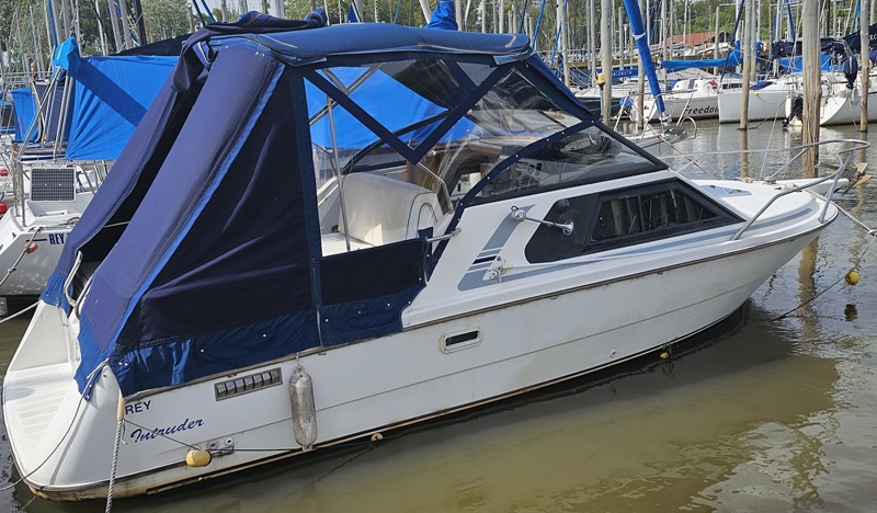 Modelo: Intruder 720 Año: 1997 Eslora: 7,20 Mts Manga: 2,45 Mts Motor: Volvo Penta 150 HP Turbo Diesel (800Hs) - Pata Volvo Penta 290 Duopro doble hélice y Power trim Equipamiento y Accesorios: Delfinera en proa y Pulpito en popa - Malacate Eléctrico - Agua potable 120 Litros - Bomba presurizada - Tanque de Diesel 100 Litros x 2 en Acero Inoxidable - Anafe con garrafa de 3 Kg. - Heladera 12 Volts con Freezer - Baño Compartimentado con inodoro eléctrico y duchador Agua Caliente y fría - Termotanque - Cargador de baterías - 2 Baterías de 100 Ampere cada una - VHF - Ecosonda y Compas - Flpas Hidráulicos - Bombas de achique (2) - Duchador en plataforma de popa y escalera de acero inoxidable - mesa desmontable en Cockpit - Cama de 2 plazas en proa y Conejera doble en popa - Cerramiento en Cristal y Sumbrella. Comentarios: Embarcación en excelentes condiciones grales..