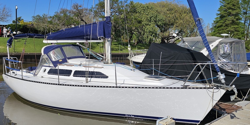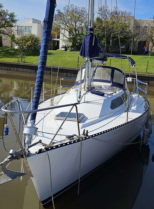 Modelo: Plenamar 27 Año: 1990 Eslora: 8,30 Mts Manga: 3,20 Mts Calado: 1,45 Mts Velas: Mayor - G1 y G3 de enrollar - Foque - Spi Motor: Volvo 18 hp., Con linea de eje, Sello seco - Repaso gral. (2024) Equipamiento y accesorios: Heladera con FREEZER - Agua presurizada - Cocina con Horno - Plotter Garmin - Corredera y Ecosonda Raymarine - Jarcia Completa - Tapizados completos 2025 - Pintura completa 2025 - Media carpa - Bimini - Chubasquera - VHF - 2 fondeos - Cabos de fondeo - Vajilla.