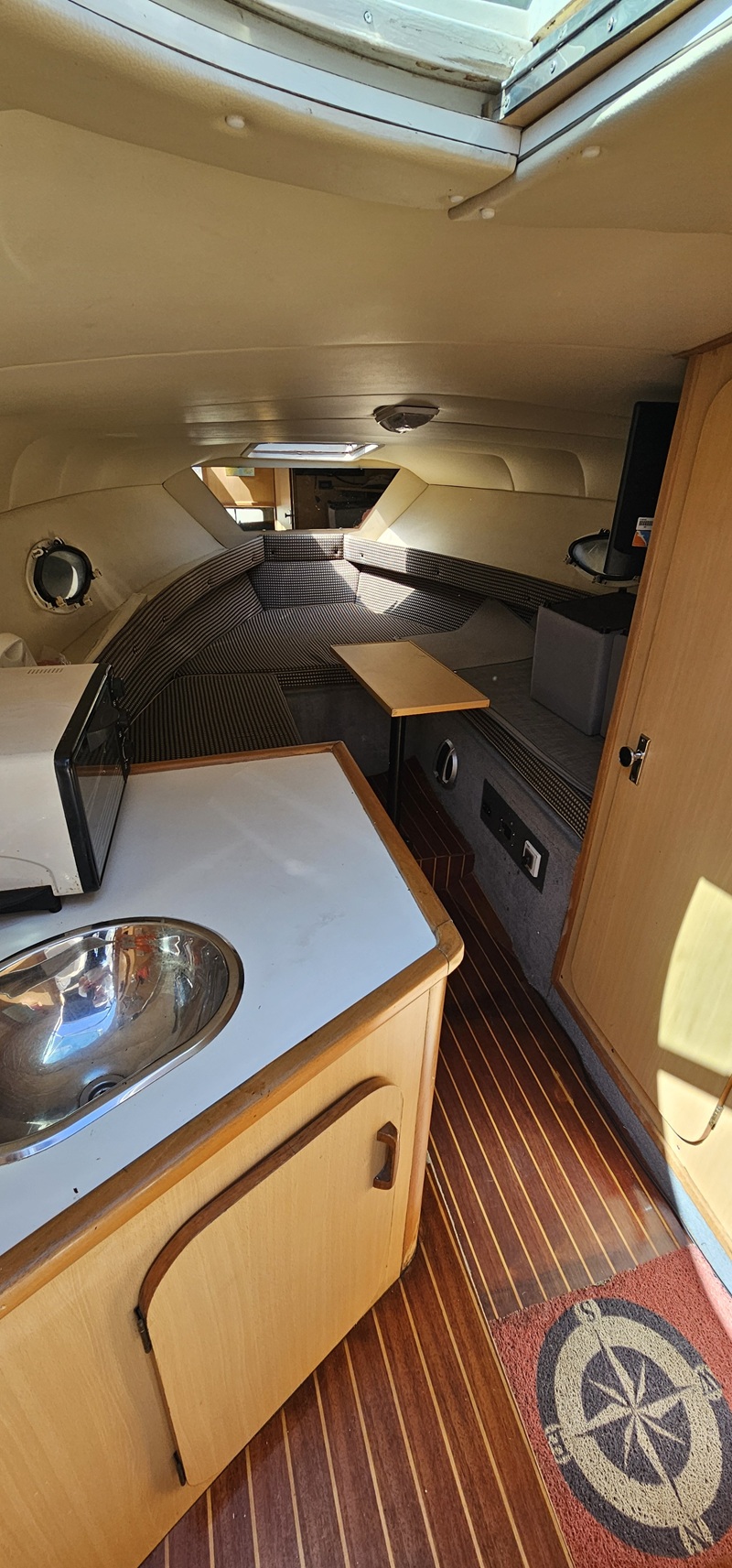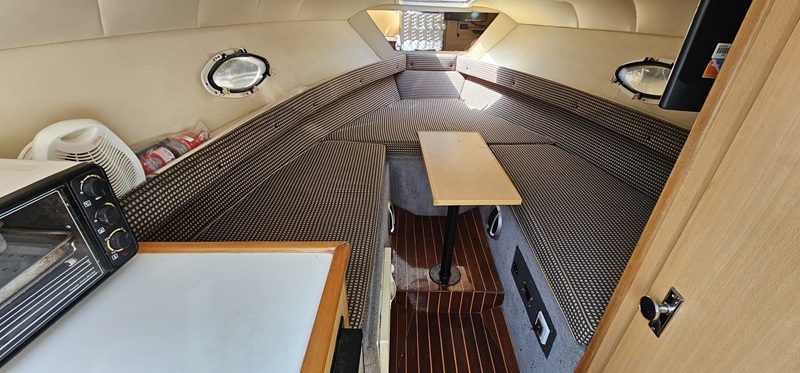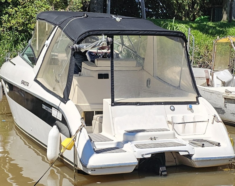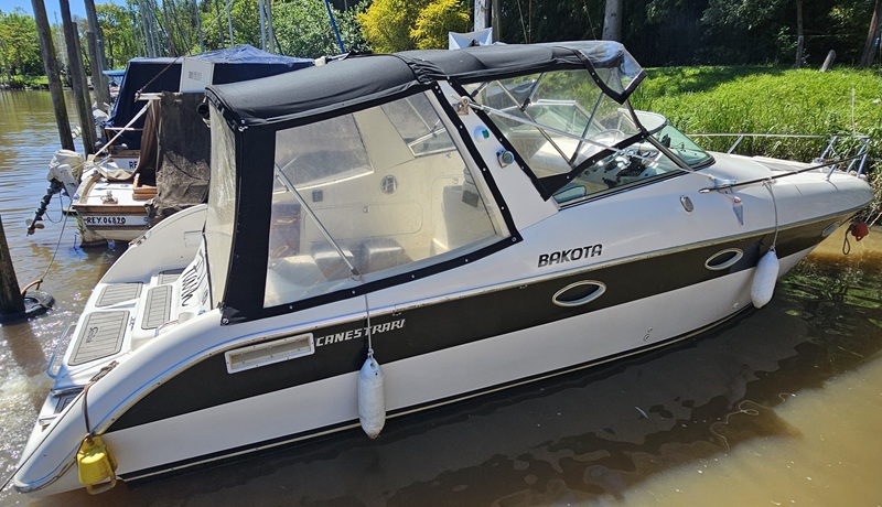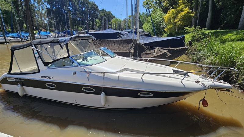 Modelo: Bakota (Canestrari) Año: 2000 Eslora: 8,65 Mts Manga: 2,45 Mts Motor: Volvo Penta KAD 32 (170 HP) turbo diesel - Pata Duoprop - Helices (2025) - Service Completo (pata y hélices año 2025). Equipamiento y Accesorios: Alfombra Infinity en cockpit (2024) - Fondo realizado en enero 2025 - Planchada Seadek (2024) - Inverter 2000 Watts (2024) - Instalacion 220 Volts - Cargador de baterias - Malacate electrico - TV - Reproductor de DVD - Horno electrico - Microondas - Heladera - Luces led - Ventiladores - Baño completo (inodoro eléctrico /bidematic) - Tapiceria / carpinteria (excelente estado gral.) - Pisos bastonados - Duchador en popa - Carpa completa - Colchonetas en proa - Cerramientos completos - Luces de navegacion led - Tanque de gasoil: 100 Litros - Tanque de agua: 80 Litros. Electronica e Instrumental: Ecosonda con GPS Garmin Striker (2025) - VHF (Uniden) - Compas (2025) - Stereo - Parlantes int/ext. Comentarios: Embarcación en excelentes cond. grales..