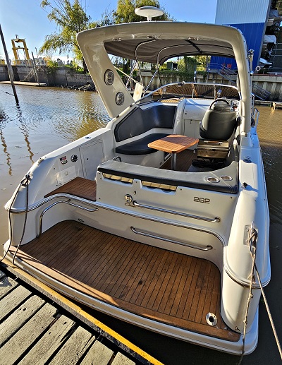Modelo: Cris Craff Año: 1993 Eslora: 7,87 Mts Manga: 2,59 Mts Motor: Mercruiser Mag 377 (320 HP - 300 Hs) - Pata c/service agosto 2022 Equipamiento y Accesorios: Flaps - Inverter - Plotter - Carpa completa -TV - Hornalla a gas - Heladera bajo mesada - 3 baterias - Reflector de proa robotico - Malacate electrico - Colchonetas de proa - Baño compartimentado con inodoro electrico - Bimini top - Mesa exterior removible - Compas - VHF - Equipo de audio, potencia y parlantes exteriores (copick y proa) - Teca exterior (copick & planchada) - Tanque de agua potable - Conejera, Embarcacion en excelente estado gral..