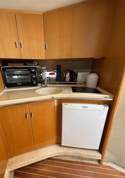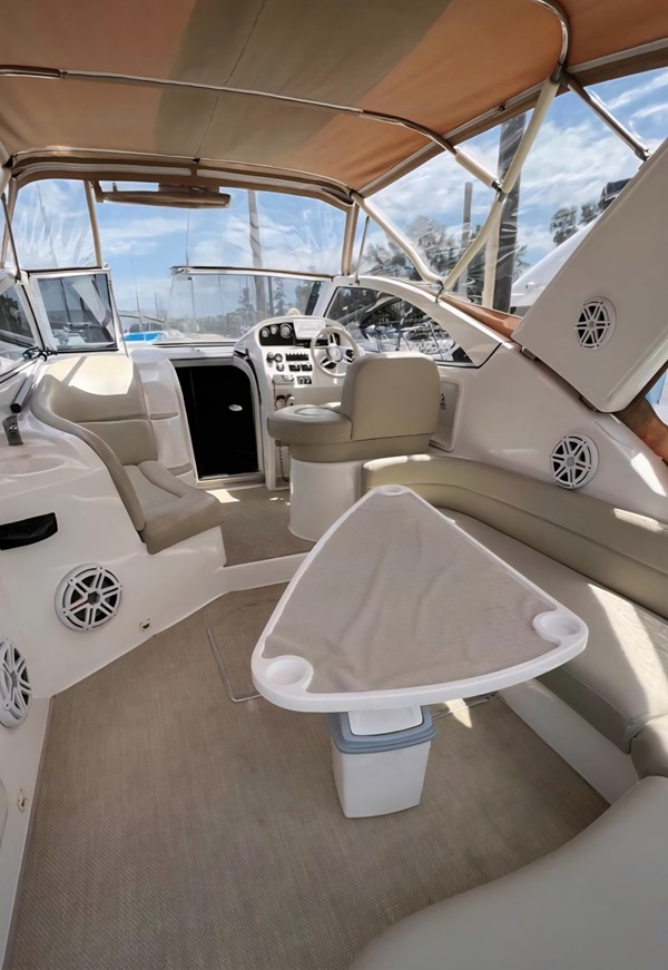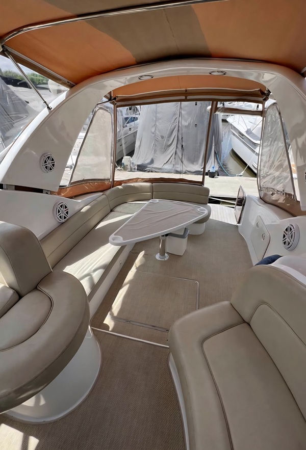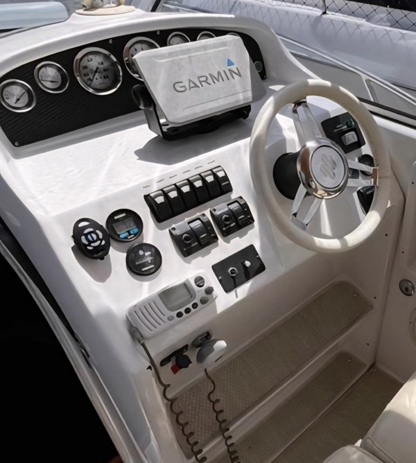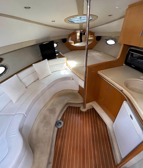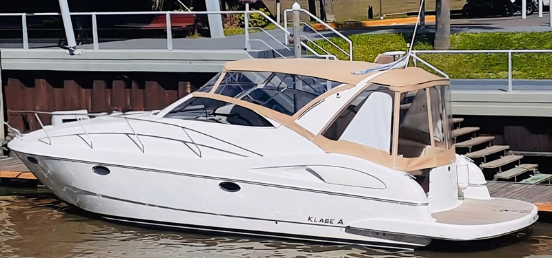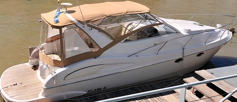 Modelo: Klase A 32 Año: 2008 Eslora: 10,75 Mts Manga: 3,6 Mts Calado máximo: 0,9 Mts Motorización: Cantidad de motores: 1 Potencia: 300 HP Marca: MerCruiser D 7.3 L (Mercury) (combustible diésel) Horas de uso: 500 hs Transmisión: Pata Velocidad máxima: 30 nudos Capacidad de combustible: 560 litros Autonomía: 10 horas Equipamiento y Accesorios: Grupo electrógeno - Calefactor - Aire acondicionado - Cargador y convertidor - Bow Thruster (hélice de proa) - Faro de control remoto - Carpa completa - Capotas y cerramientos completos - Flaps hidráulicos - VHF (radio) - Ecosonda y corredera - Equipo musical parlantes (potencia) - Tanques de agua: 120 litros - Anafe de 2 Hornallas - Heladera Eléctrica. Comodidades: Cama doble en proa - Cocina a babor - Baño a estribor - Sillón envolvente en el centro de la cabina - Camarote en popa bajo el cockpit.