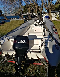 Modelo: Semirrigido Kiel 5,60 Mts Año: 2013 Motor: Mercury 90 hp 2 tiempos, año 2009 (service completo Diciembre 2021) Equipamiento y Accesorios: Tubos nuevos 2021, Sin botar - Bateria 2022 - VHF - Ecosonda .........................