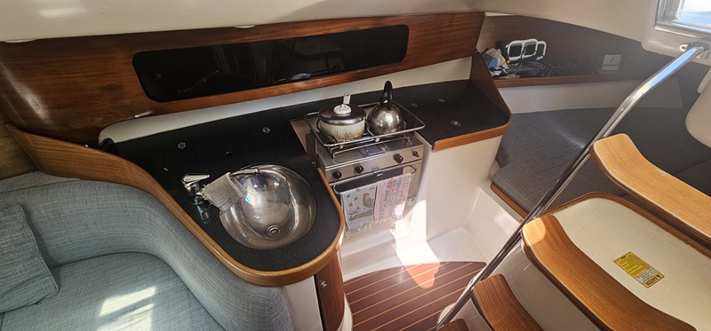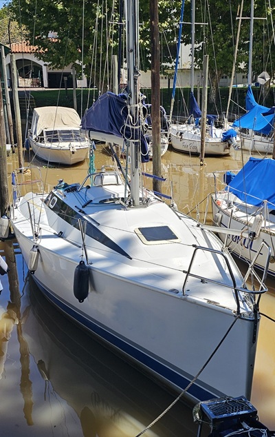 Modelo: Bramador Nova Año: 2006 Eslora:8,15 Mts Manga: 2,97 Mts Calado:1,50 Mts Motor: Yanmar 15 HP con Linea de eje Velas: Dacrón (Mayor - G1 - Foque) - Regata Kevlar (Mayor - G1) - Spi sin uso Equipamiento y Accesorios: Piloto automatico (Raymarine) - Tridata S60 (Raymarine) - Pintura de fondo 2023 (Mastic Hempel) - VHF Raymarine - Stereo - Termotanque - Agua Caliente Cocina y baño - Cocina con horno - Inodoro eléctrico - 2 Baterias 75 Amp c/u - Molinetes Harken.