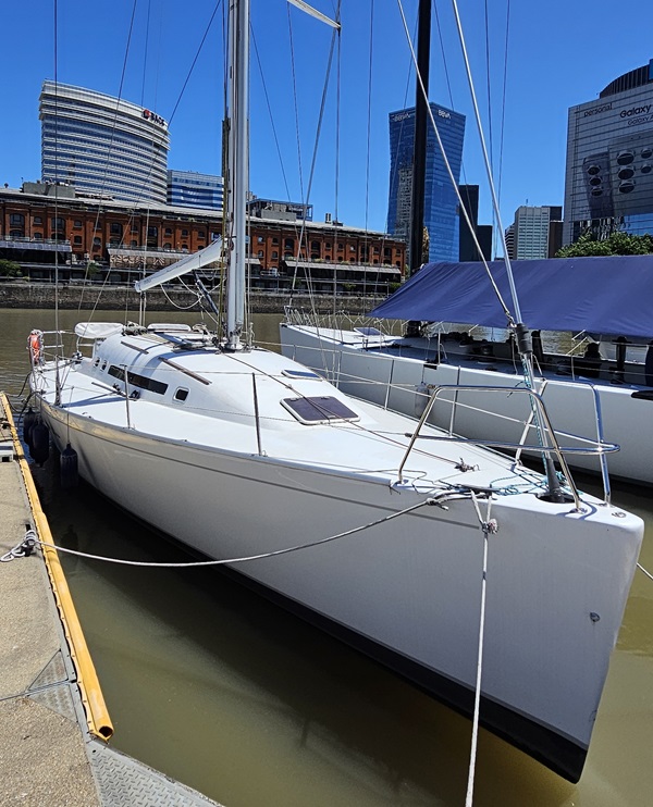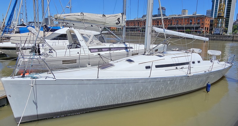 Modelo: Corum 42.5 Año: 2005 Eslora: 12,6 Mts Manga: 3,80 Mts Calado: 1,90 Mts Velas: Mayor Dacron - Genoa 1 de enrrollar dacron - Genoa 4 enrrollar dacron - Spi Asimetrico 0,75 - Spi Simetrico 0,75 - Codigo 0 Motor: Lombardini 30 hp con linea de eje - Helice plegable 2 palas - Doble filtro de gas oil - Tanque de combustible 90 lts Disposicion: Camarote a proa en suite - Dinette - 2 baños con inodoros electricos y duchas - 2 camarotes con camas de 1,30 mts a popa - Cocina en banda de estribor - Mesa de navegacion - Mesa Dinette regulable - Altura interior 2,10 Mts - Cockpit con brazola - 10 tambuchos lewmar Mastil Aluminio King harken - aparejo fraccionado 9/10 - 3 pares de crucetas retrasadas - Obenques a las bandas - Popel regulable - rizos automaticos - Lazy jacks - Vang rigido Instrumental: Garmin GNX Wired 52 Pack (GNX Wind, GNX 20 gWind, GND10 y DST800) - Plotter 7" ultima generacion en red - Piloto al sector Garmin GHP Reactor 40 - Gps - Vhf - Veleta Maniobra: Stoppers spinlock - Enrrollador de genoa (Harken / bajo linea de cubierta) - Doble rueda - Timon y rodamientos Harken - Traveller harken - Molinetes Harken Equipamiento: Calefactor Eberspacher 4 bocas - Cargador de baterias inteligente Xantrex - Termotanque 220 Volts y agua de motor (25 litros) - Tomas 220V en los 3 camarotes y cocina - Cargador usb doble en los 3 camarotes y mesa de navegacion. Heladera Danfoss 12 volts - Inverter 500 w - Microondas - Cocina con horno - 2 garrafas de 3 kg. - Pileta inoxidable doble - Agua presurizada fria y caliente - Agua presurizada de rio - 2 tanques de agua potable de 180 lts c/u. - Estereo con 8 parlantes (2 exteriores) - Luces led - Cubremayor - Toldilla Barco en buenas condiciones grales. (Crucero - Regata)