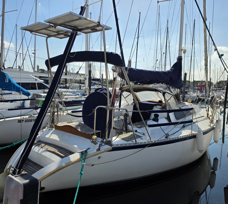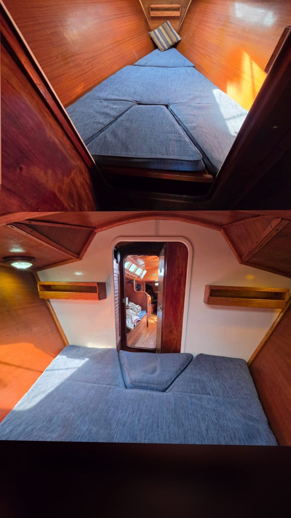Modelo: Holland 34 CONSTRUCCIÓN: ASTILLEROS DEL ESTUARIO - BOTADO y MATRICULADO JUNIO 2002 (2do Titular) Año: 2002 Eslora: 10,28 Mts Manga: 3,34 Mts Calado: 1,80 Mts Velas: 1 Vela mayor estándar – full batten - muy buen estado (2 manos de rizos) - 1 Vela mayor de dacron pesado – full batten – buen estado (3 manos de rizos) - 1 Genoa Hood 130 % muy buen estado (de enrollar) - 1 Genoa Doyle 125% buen estado, dacron más pesado (de enrollar) - Maniobra completa de spinnaker (Tangón en fibra de carbono - Carro en palo con aparejo y mordazas) Amantillo y contra-amantillo al cockpit - “manitos” para brazas de spi con pastecas removibles, guía y mordazas en ambas bandas - Pastecas removibles para las escotas, escotas de 8 mm - 1 Spinnaker 0.75, perfecto estado - 1 Spinnaker asimétrico liviano, perfecto estado - Aparejo para trimado de estay popel, en dynema, con funda de sunbrella - 2 Manos de rizos en vela mayor, llevados al cockpit - Drizas de Mayor, Guenoa y Spinaker al cockpit - Baby – stay con aparejo, llevado al cockpit - Vang rígido Bohn, con cabo llevado al cockpit - Enrollador de genoa Profurl con stopper en cubierta de popa Motor: MOTOR y HÉLICE Motor YANMAR 2QM15, completamente renovado en 2013 (camisas, pistones, aros, metales, inyectores, bomba de inyección, bomba de agua, ánodos, mangueras y filtros), con repuestos originales YANMAR USA. La caja reductora fue repasada y todos los discos de fricción y sellos reemplazados por nuevos originales USA. Horas actuales: 680.