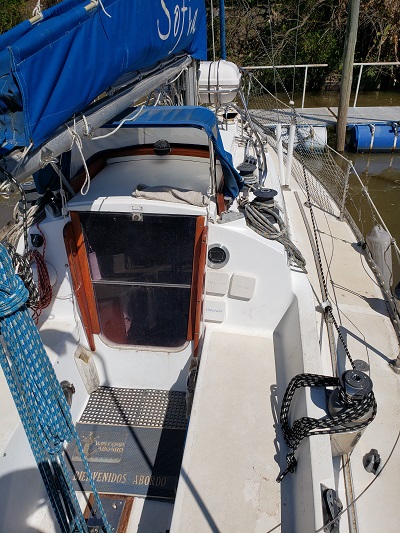 Modelo: Roy 26 Año: 1980 Material: P.R.F.V. Eslora: 7.96 mts Manga: 2.72 mts Calado: 1.3 mts Altura Interior: 1.8 mts Diseño: GERMAN FRERS Astillero: NAUTIVELA.- Motor: Combustible: NAFTA. Fuera de borda Velas: 2 MAYORES(una más vieja), GENOA DE ENROLLAR , 2 FOQUES, MULTIPROPOSITO Y TRINQUETILLA. Genoa 2 north año 2015 Spi con snoofer Instrumental: COMPAS: SUUNTO / RITCHIE V.H.F.: SEA RANGER – JRC CON DISTRESS.- ECOSONDA: no funciona. CORREDERA: NAVMAN.- ANEMOMETRO: NAVMAN VELETA: NAVMAN.- no está GPS: NAVMAN TRACKER 5500.- PILOTO: RAYTHEON ST 2000 STEREO: PIONEER (4 PARLANTES) ESTACION METEOROLOGICA: ELECTRÓNICA.- Equipamiento: ENROLLADOR: HOOD.- STAY DE TRINQUETILLA.- MOLINETES DE GENOA SEAWINCH CON SELFTAILING.- STOPPERS EASY LOCK.- CAÑA DE TIMON DE ACERO INOXIDABLE.- MOTOR yamaha 2t 8 hp añi 2015 con 60 hs uso o susuki año 2000 15 hp 4t ENTRADA 220.- HELADERA 12V y 220.- INODORO ELECTRICO.- con bidet y fucha PUERTA DE ACRILICO y de madera 1 BATERÍAS DE 75 AMP preparado para dibke distema independiente con regulador de voltaje C/U.- CARPA.- CHUBASQUERA.- CUBRE MAYOR.- CUBRE VENTANAS Y TAMBUCHOS INTERIORES. CENEFAS.- DUCHADOR EN EL COCKPIT.-y en el baño 1 GARRAFA.- LINEA DE VIDA DE CINTA. COLCHONETAS PARA EL COCKPIT. BOMBA DE ACHIQUE ELECTRICA Y MANUAL. TRES TANQUES DE AGUA: 1 DE 150 LTS. PLASTICO, 1DE 60 LTS. ACERO INOXIDABLE y 1 DE 40LTS. Balsa de supervivencia 2013 sin recorrer, sujeta con estructura de inoxidable